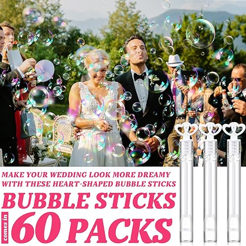 POWZOO 60x Bulles de Savon Enfant,Bulles de Savon Mariage,Bulle de Savon Set,Mini Tubes Bouteilles Machine à Bulle Jouet,avec Poignée en Forme de Cœur,pour Saint Valentin,Fête d’Anniversaire.