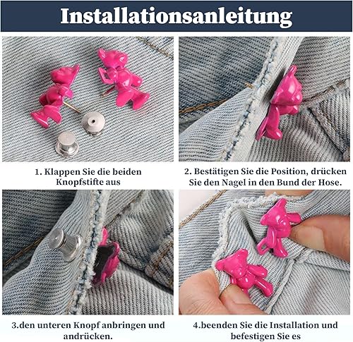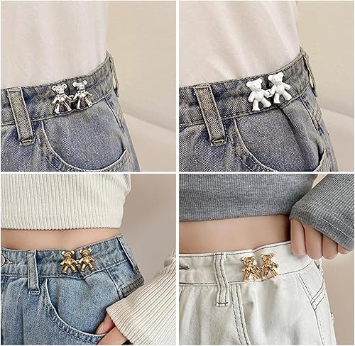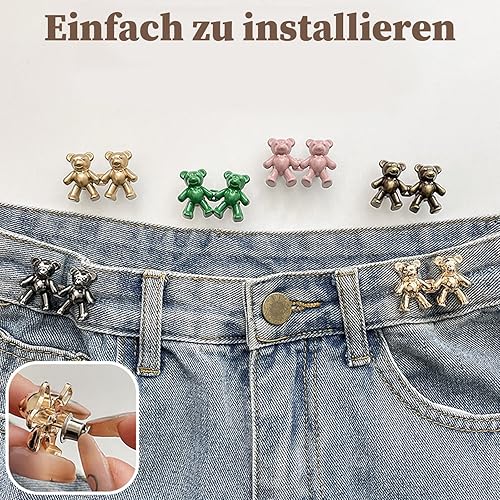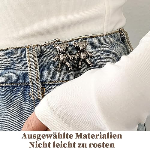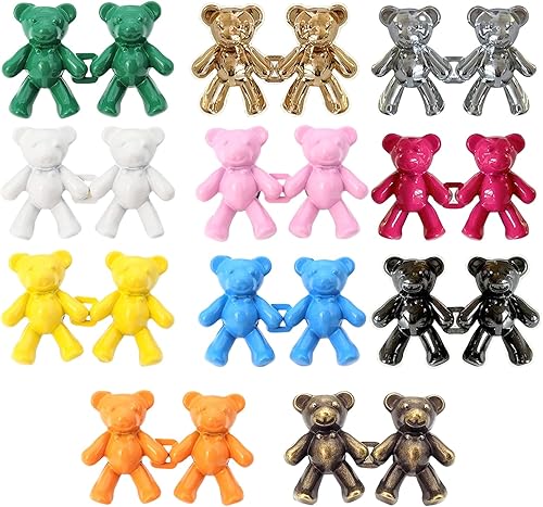 Acpetdr Lot de 11 paires de boutons pour jeans en forme d'ours, boutons de pantalon No-Sew, multicolores, taille réglable, en Métal