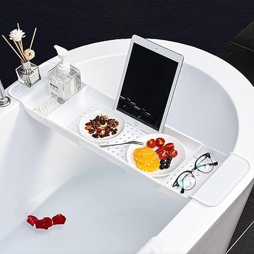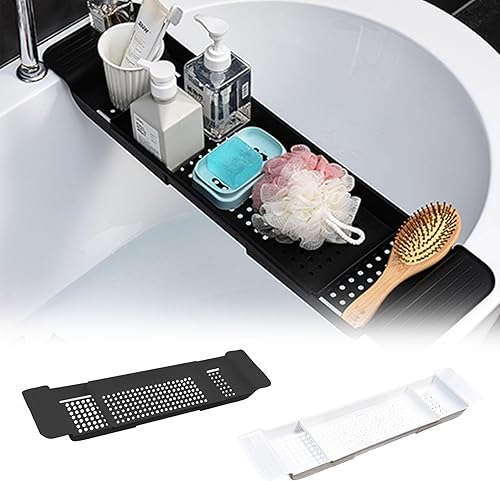 Plateau Baignoire, Plateau De Bain Extensible, Pont De Baignoire, Plateau Tablette Salle De Bain Multifonctionnel, Accessoire De Salle De Bain pour Bougie, Serviette, Livre, Verre À Vin, Téléphone