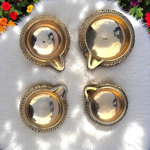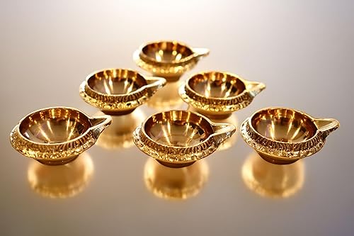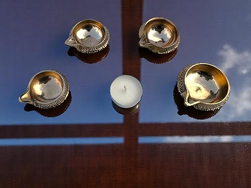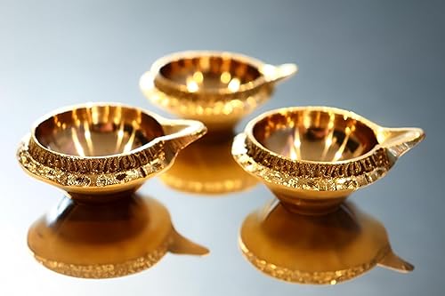 Diya Lampe à huile traditionnelle en laiton fabriquée à la main pour Diwali, Pooja, festivals et décoration d'intérieur | Cadeau parfait pour les occasions spéciales (petite taille - 56 mm, 3)