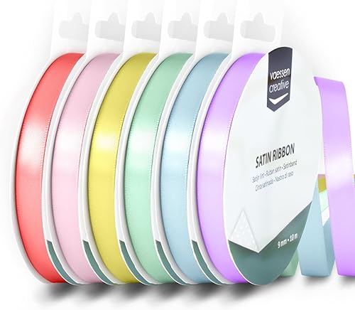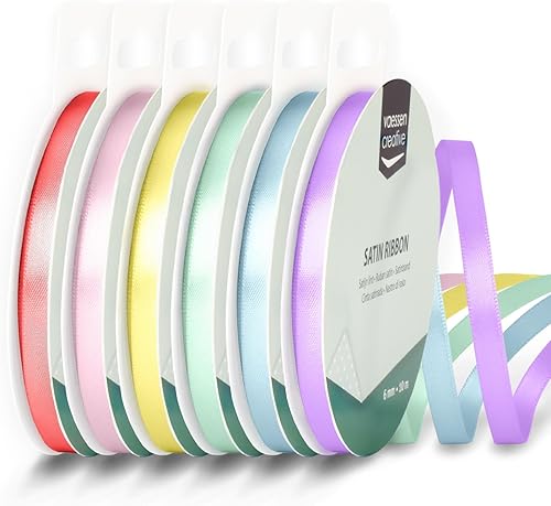 Vaessen Creative Ruban Satin 9 mm x 10 m - Bolduc Double Face pour Cadeau, Emballage et Bouquet Mariage - Couleurs Pastel - 6 Pièces
