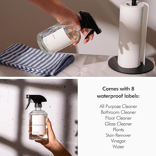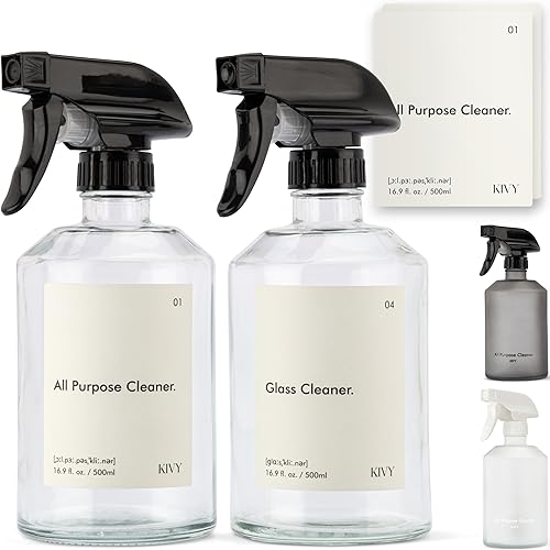 KIVY Flacons pulvérisateurs en verre pour le nettoyage + étiquettes – 2 flacons pulvérisateurs vides de 473,6 g pour le nettoyage et les plantes – Bouteilles de nettoyage en verre réutilisables –