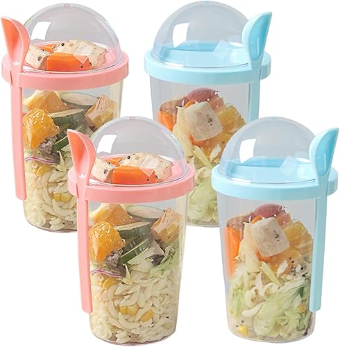Pot d'avoine de nuit Pots de yaourt de petit déjeuner réutilisables Récipient d'avoine de nuit avec couvercles Cuillère pour salade de céréales au lait 4PCS Pot de yaourt Récipient de yaourt Récipient