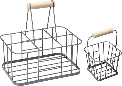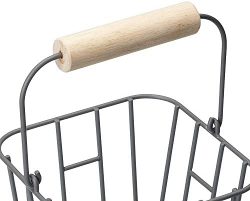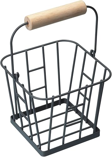 Living Nostalgia KitchenCraft - Panier à Œufs en Métal, Poignée en Bois, Collection, 16 x 16 x 13.5 cm - Gris
