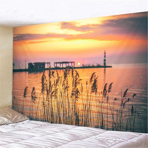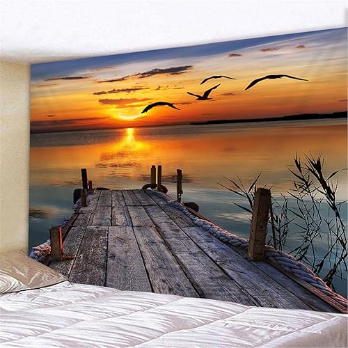 Tapisserie Beau Paysage Coucher De Soleil Mer Vague Lac Tenture Murale Fond Maison Chambre Décor 150X100cm