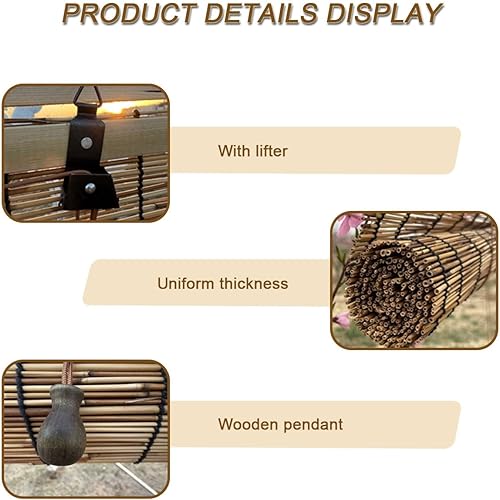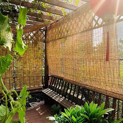 LJDJRHXH Store Bambou Exterieur Terrasse, Store Enroulement Bambou Occultant pour Fenetre, Rideau De Roseau Naturel Store Venitien Romains Respirant Personnalisable 30-160 cm Largeur
