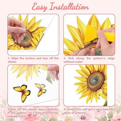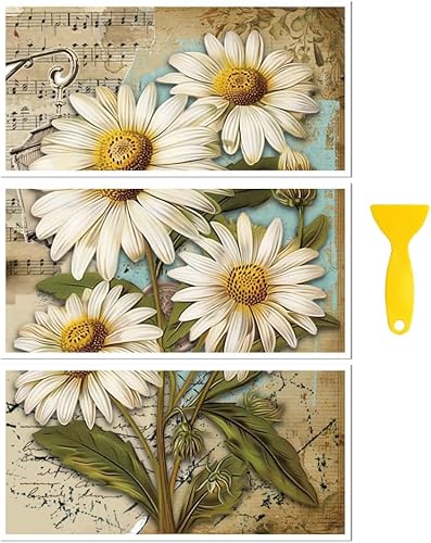 Peacoblue Autocollants de Transfert à Frotter pour Meubles et Loisirs Créatifs 15x30 cm, Motif Marguerite vintage pour album, 3 pièces, transfert UV DTF étanche pour tiroir, commode, verre
