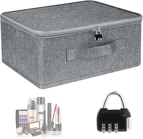 SKIKHN Boîte de rangement verrouillable pour médicaments, boîte de rangement verrouillable avec couvercle en tissu, boîte de rangement verrouillable, boîte de rangement avec serrure, pour bonbons