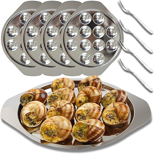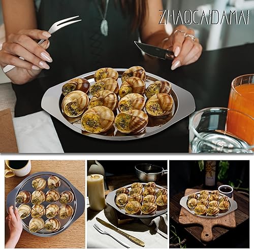 Assiette Escargot, 4 Pièces-12 Trous En Acier Inoxydable, Plat D'escargot - Assiette à Huîtres Assiette De Service Aux Champignons Service à Escargots En Métal Couverts à Escargots