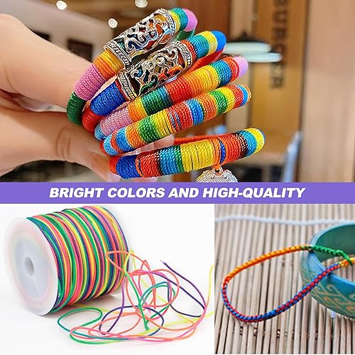 Fil de perles coloré pour la fabrication de bracelets, 160 m de fil en nylon tressé de 1 mm pour fabrication de bracelets et bijoux