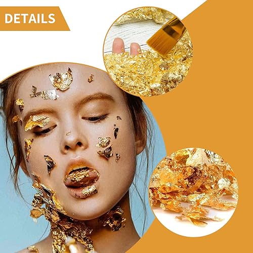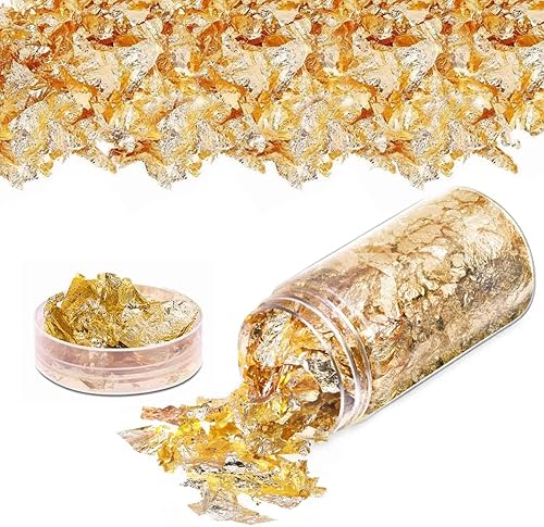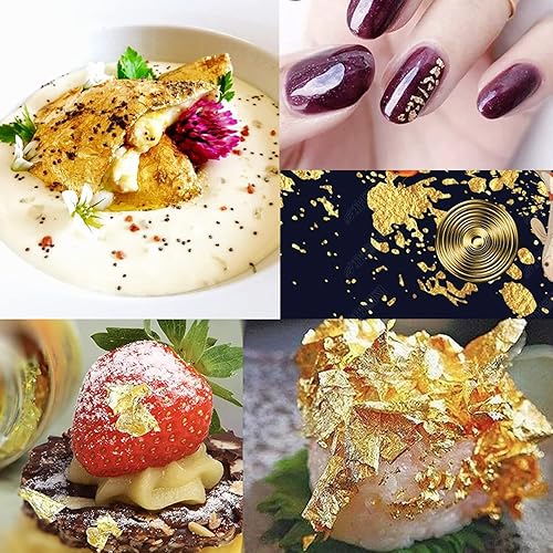 Luvadeyo Gold Leaf Flakes Multifonctions Décoratif Papier Doré Foil Paper Decoration Cuisine Mousse Craft Décoration 30 ML