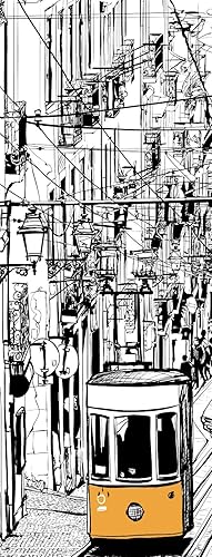 A.Monamour Sticker Porte Autocollant Poster de Porte 3D Pen Sketch Tramway Tramway Typique Au Portugal Lisbonne Chiado Square Vinyle Affiche de Porte Sticker Mural Papier Peint Art Décor 90 x 200 cm
