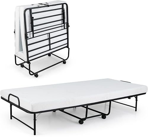 GOPLUS Lit Pliant 1 Personne, Matelas 90x190CM, Lit Pliable Adulte avec Matelas en Mémoire 10 cm Orthopédique,Charge 220KG, Lit d'Appoint 1 Place pour Invités, Othopédiques