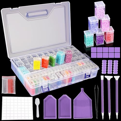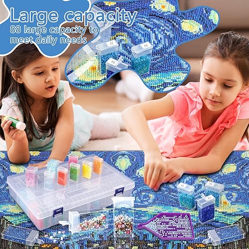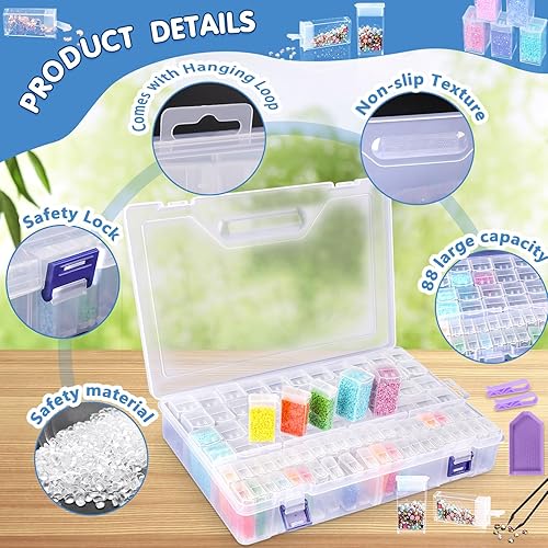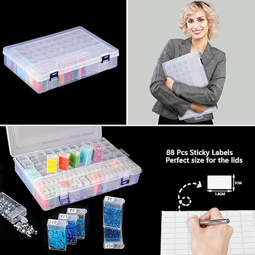 MOYKSRR Diamond Painting Accessoires Boite, 88 Grilles Boite Perles Compartiment en Plastique, Amovible en Plastique Transparent Organiseur, Boîtes de Rangement pour Peinture Diamantée pour DIY Craft