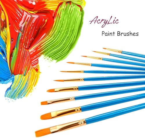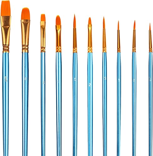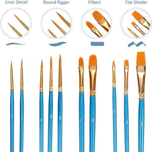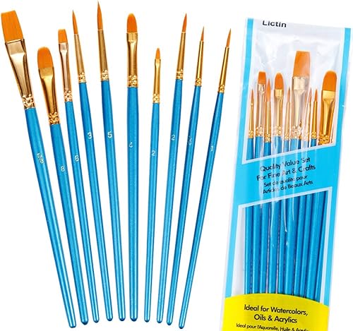 Lictin Pinceaux Peinture Acrylique - 10 Nylon Pinceaux Artiste Plume Lisse, Pinceaux de Peinture à l'huile pour Aquarelle, Gouache Acrylique Bleu