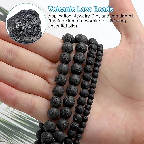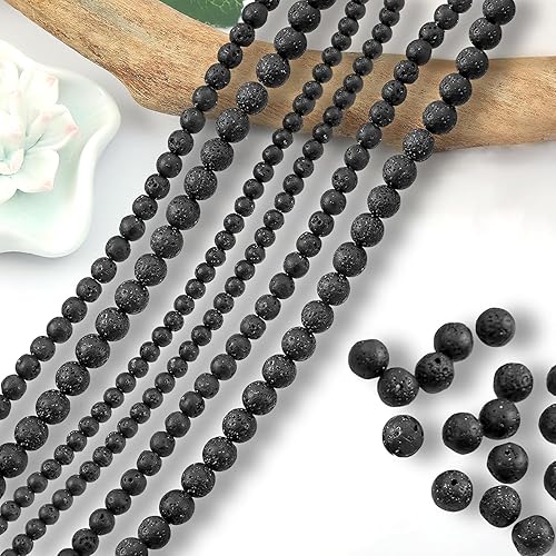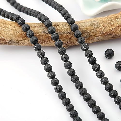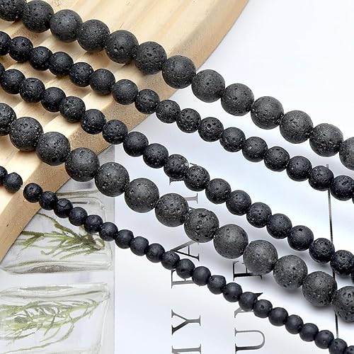 4 6 8mm 420 pièces Lave Noire Roche Volcanique Perle Pierre Naturelle Ronde en Vrac Perles Semi Precieuse pour Fabrication de Bijoux de Bracelets et de Colliers