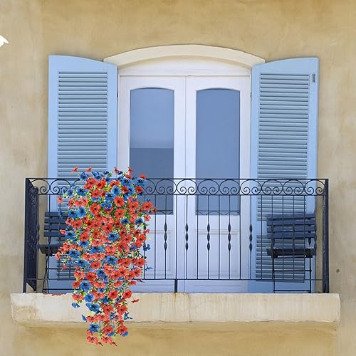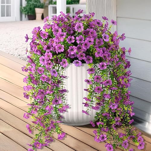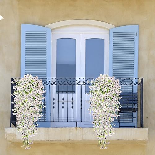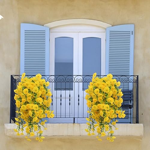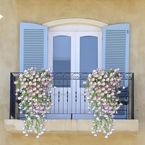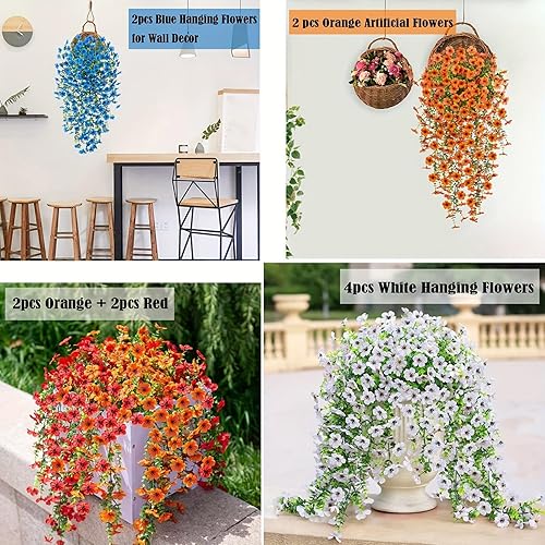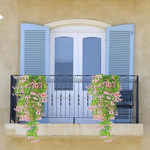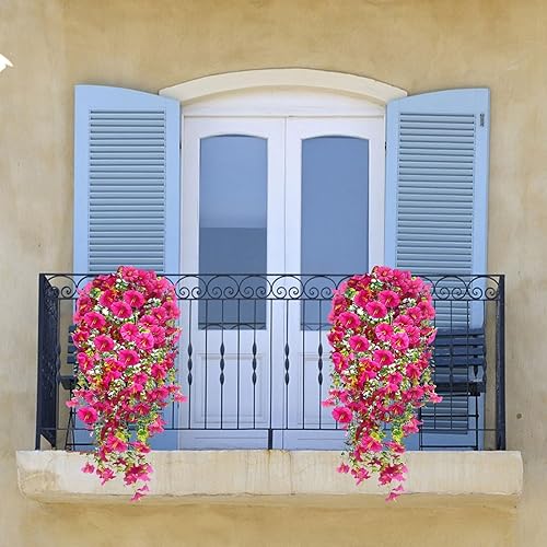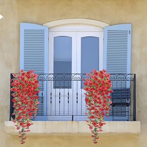 Fleurs Artificielles Suspendues Pétunias 75CM Pots Extérieure Intérieure Decoration Guirlande Vigne Faux UV Artificielle Rouge pour Maison Hôtel Bureau Mariage Jardin Artisanat Art Déco