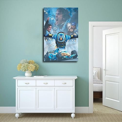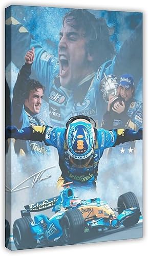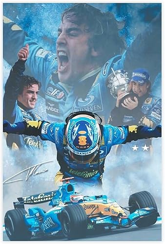 TONFON Fernando Alonso – Affiche sur toile avec autographe de pilote espagnol de F1 pour chambre à coucher, bureau, chambre, cadeau, sans cadre, 20 x 30 cm