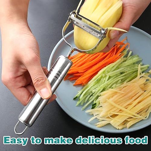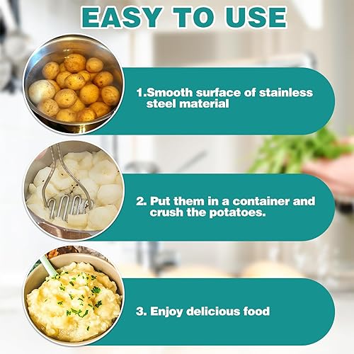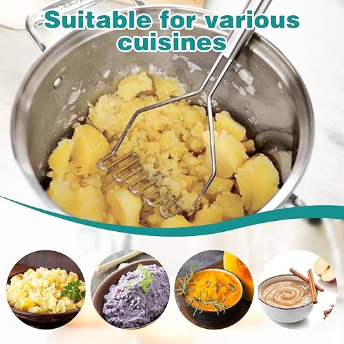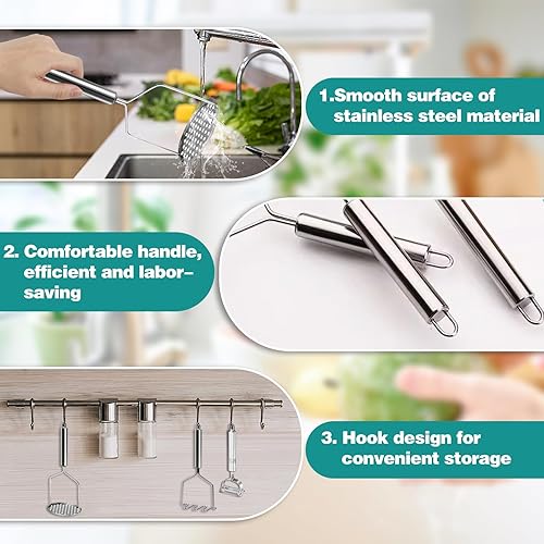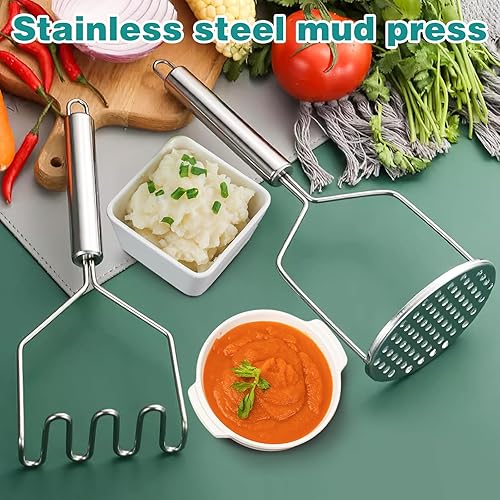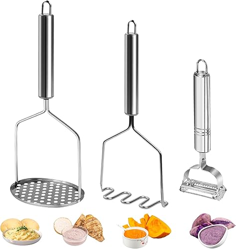 FIHODONE Lot de 2 presse-purées, 1 éplucheur de pommes de terre, presse-purée en acier inoxydable, éplucheur de potato masher cuisine, presse-purée de pommes de terre en acier inoxydable pour purée de
