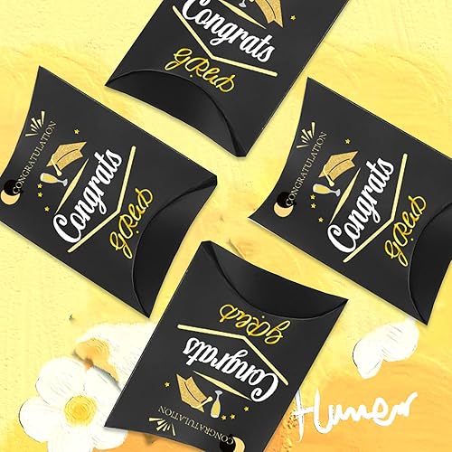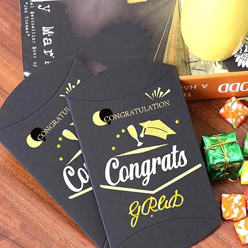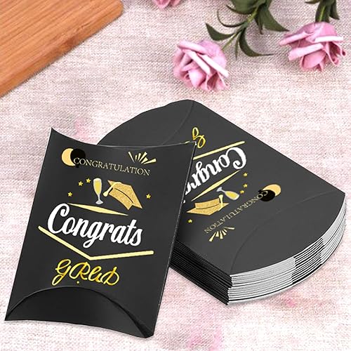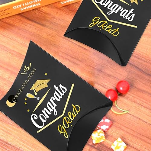 Ovanda Lot de 20 boîtes cadeaux noires pour remise de diplôme, boîtes à bonbons, boîtes cadeaux 2025 pour remise de diplôme, emballage de bonbons, boîtes à friandises, porte-bonbons