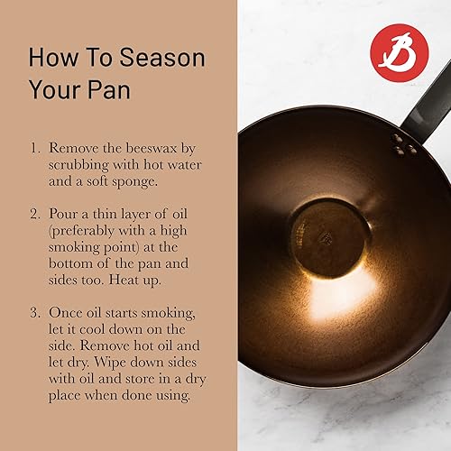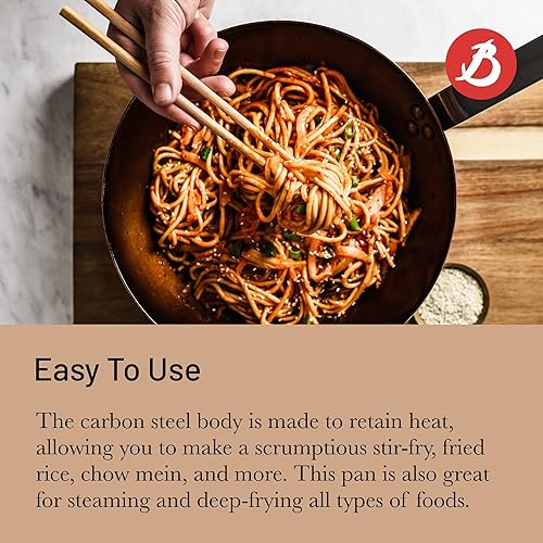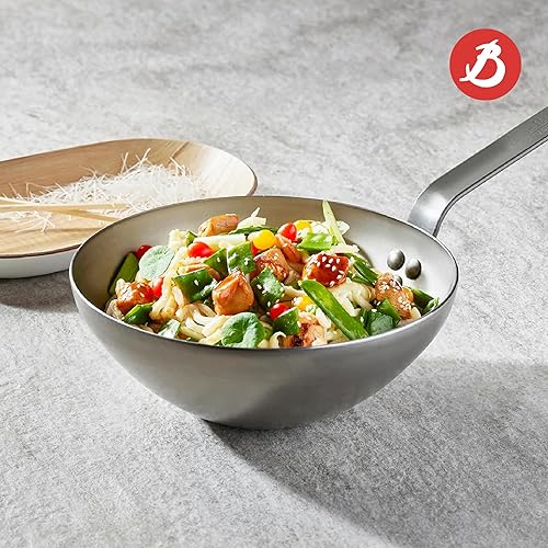 De Buyer - Wok à queue en tôle d'acier MINERAL B et anse face à queue - 32 cm - Fabriqué en France, Sans PFAS, Anti Adhérence Naturelle, Finition à la Cire d'Abeille, Tous Feux + Flash Four