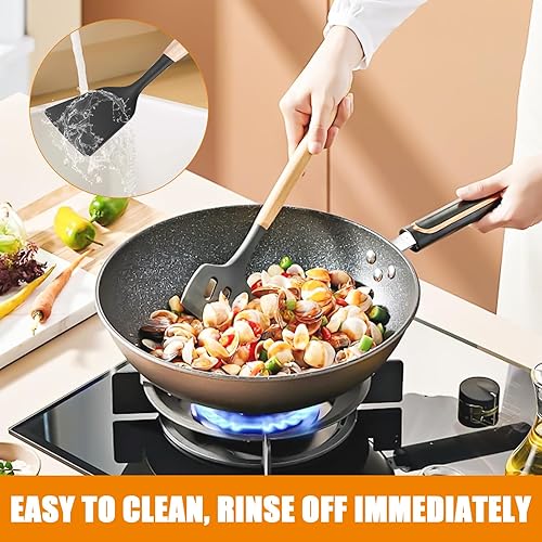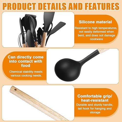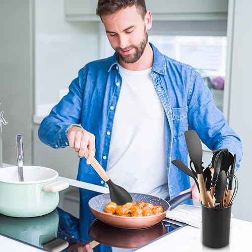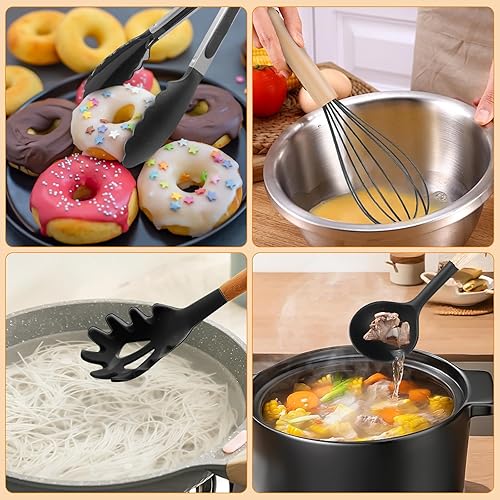 GOMETY Ustensiles de Cuisine en Silicone: 12 Pièces Ensemble d'Ustensiles de Cuisine en Silicone, Résistants à la Chaleur, Antiadhésifs, pour Cuisiner, Pâtisser et Frémir (Noir)