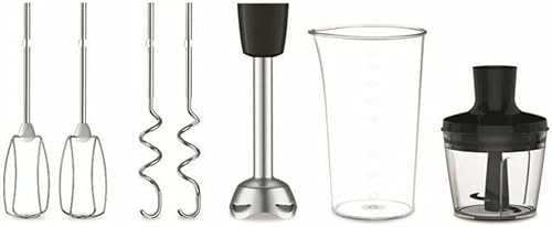 Moulinex Batteur électrique, 500 W, 5 vitesses, Réglage Turbo, 2 fouets + 2 pétrins en acier inoxydable, Idéal pour les préparations légères et épaisses, Prep'Mix+ HM460110