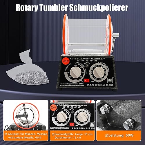 Mini Polisseur de Bijoux,Rotary Tumbler Polisseuse de Polissage 60W 3kg 4 Vitesses Variables Pour Bijoux Pièces Monnaie Laiton D'Autres Métaux etc