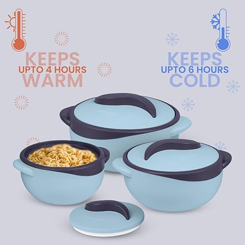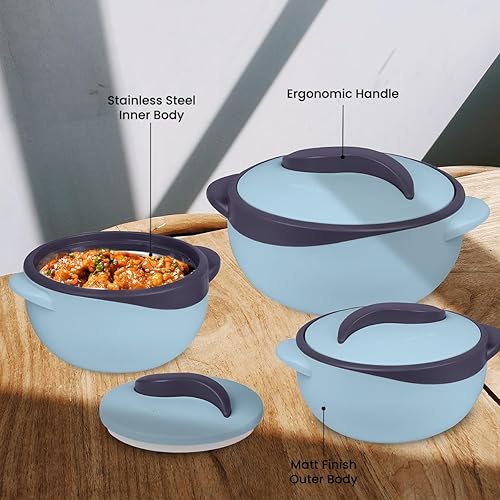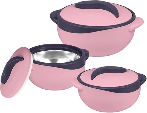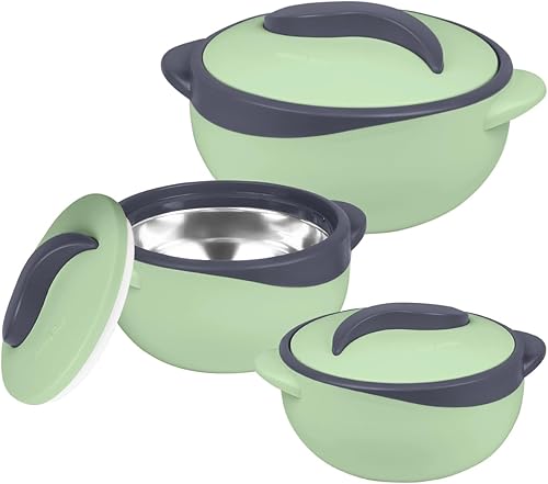 Pinnacle Lot de 3 cocottes isothermes avec couvercle 2,6/1,5/1 l – Réchauffeur de nourriture/refroidisseur – Bol de service thermique pour soupe/salade – Récipient à aliments chauds en acier