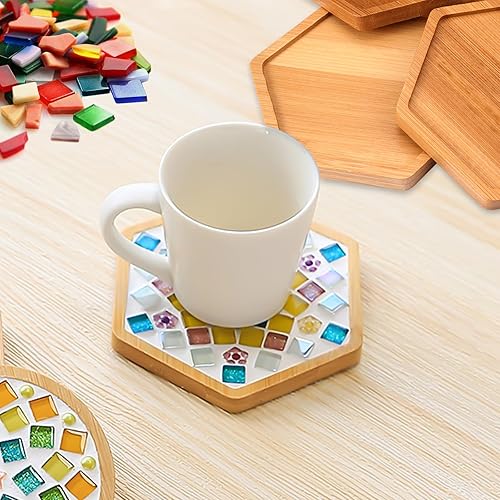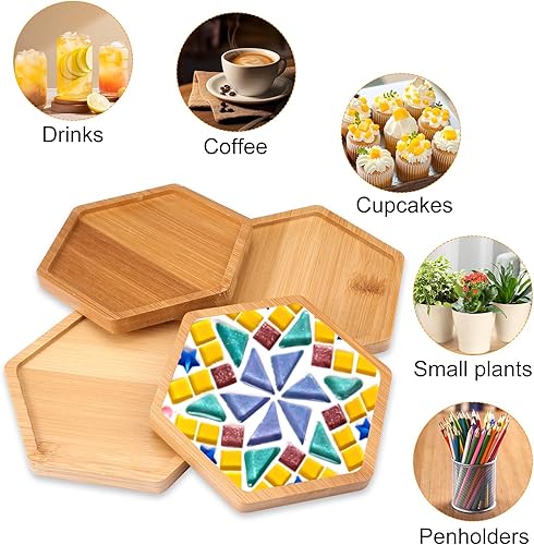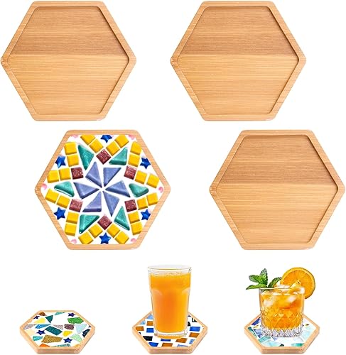 4 Pièce Dessous de Verre Vides en Bambou, Dessous de Verre en Mosaïque de Bambou, Sottobicchieri in Legno per Bevande, Dessous de Verre Base, pour Plantes, Gobelets