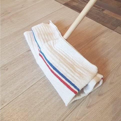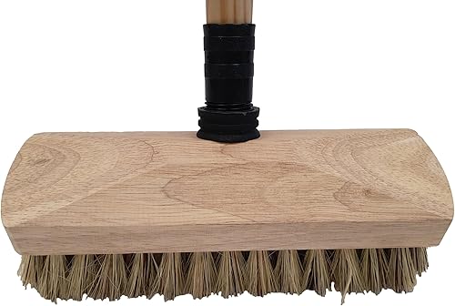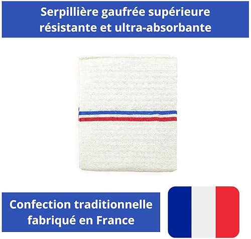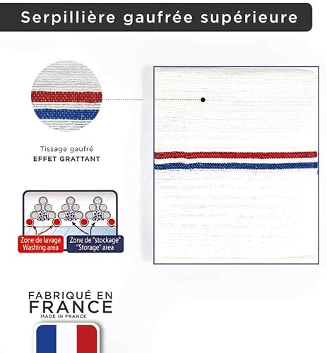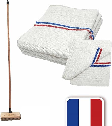 Lot de 1 Balai Brosse à récurer Lave Pont + 3 Serpillères gaufrées supérieure Blanche 60 x 100 cm, Fabriquées en France, Brosse en Poils en matières végétales, très résitants. Manche de 130 cm.
