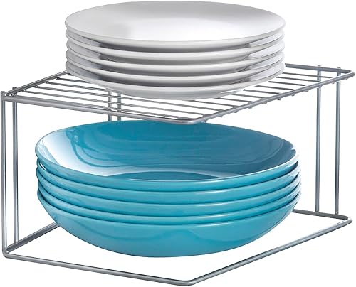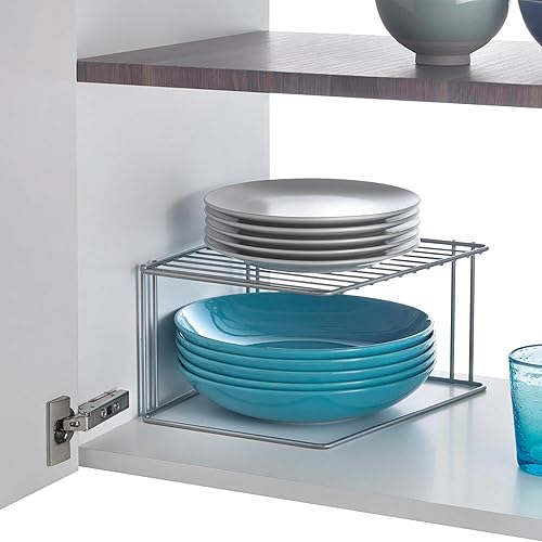 Metaltex Plate Kitchen Cupboard Organiser, Space Saver Corner Sink Dish Drying Rack with Polytherm Coating-Metallic, Silver, 25 x 25 x 15 cm