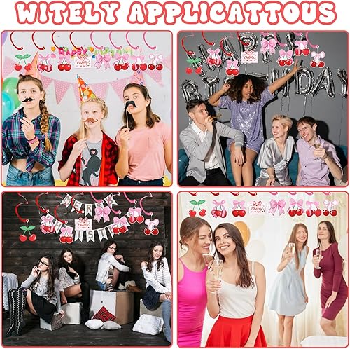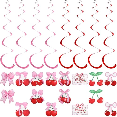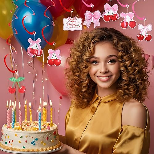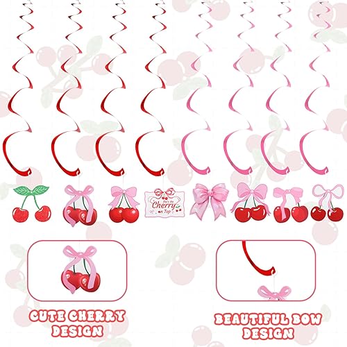 Lusofie Lot de 16 guirlandes en spirales de cerise - Décoration de fête - Décoration à suspendre - Décoration d'anniversaire pour fille - Guirlande rotative en papier - Serpentins pour fête prénatale