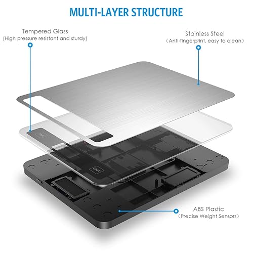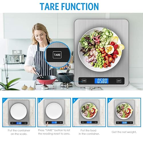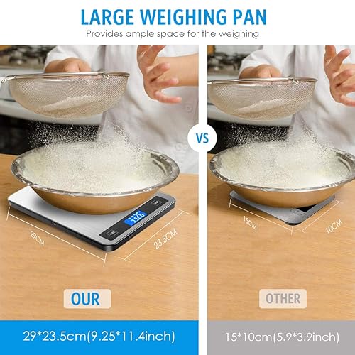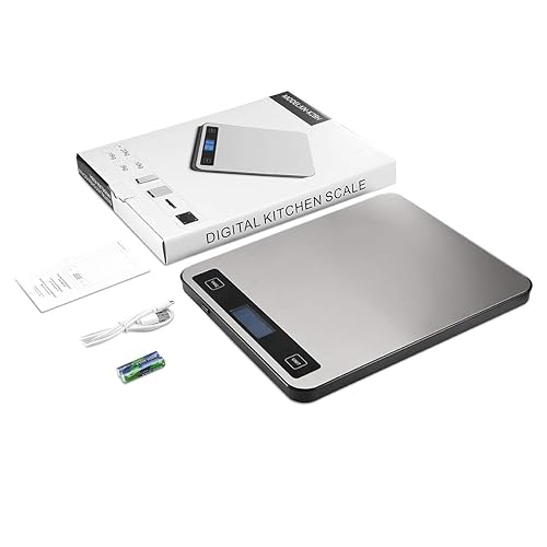 Brifit Balance de cuisine numérique 20 kg avec grande plate-forme en acier inoxydable, balance de cuisson rechargeable par USB avec écran LCD, balance de cuisson électrique avec fonction tare, 5