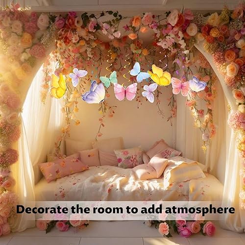 28 Pièces Décoration Papillon Guirlande Suspendue pour Anniversaire Mariage Printemps Chambre Fille Enfant Fête Décorations Colorées en Papier