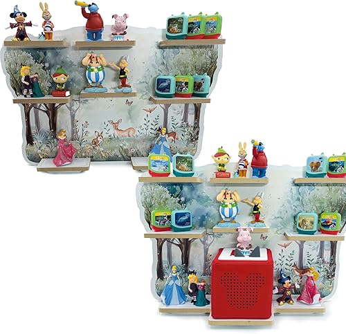 Smagnon Toniebox - Étagère murale ou sur pied - Motif animaux de la forêt - En MDF - Pour 30 tonies et Toniebox - Design naturel