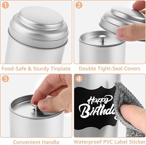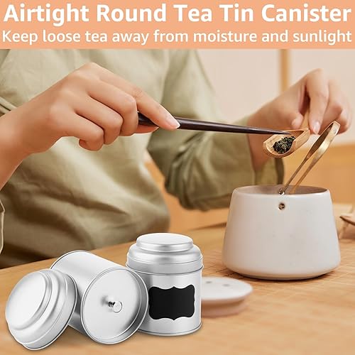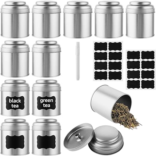 ZOFUN Lot de 12 boîtes à thé pour thé en vrac avec double couvercle hermétique, boîte ronde de 50 g, petits récipients de cuisine pour thé, café, sucre, herbes et épices
