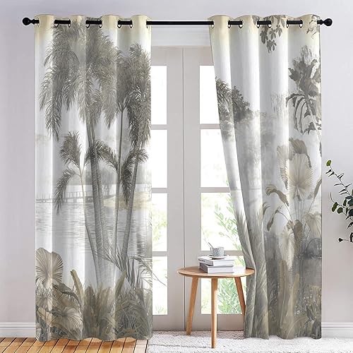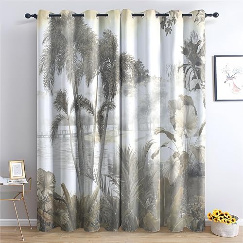zcwl Rideau Occultant Palmier Tropical, Paysage De La Jungle Motif Rideaux Thermiques à Oeillets, Rideaux Imprimé pour Salon Chambre Fenetre Moderne Décoration, 140x240 cm (L x H), Lot de 2