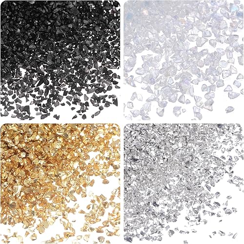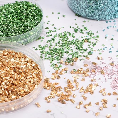 QUARKZMAN 68g Verre Concassé Paillettes de Verre Pilé 1-3mm Électroplaqué Brillant Éclats de Verre Cassé Irréguliers pour Décoration d'Art en Résine, Remplissage de Vase, Doré, Argenté