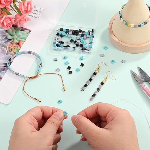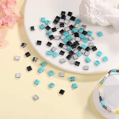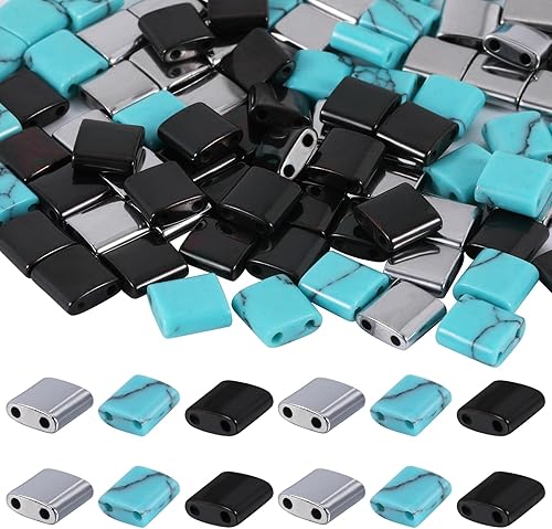 BEEFLYING 90 pièces de Perles Tila 5 mm, Perles carrées Plates à 2 Trous, Perles séparatrices japonaises pour la Fabrication de Bijoux, Bricolage, Bracelet Multi-brins, Collier, Boucles d'oreilles