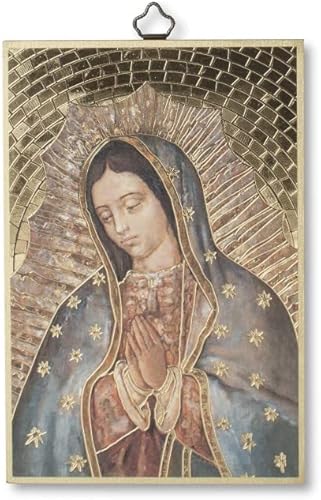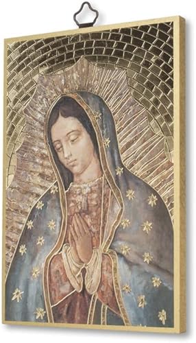 Fratelli Bonella | Tableau Sacro sur bois MDF de peuplier 8 mm avec la Vierge de Guadeloupe avec prévière dédiée sur l'arrière 10 x 15 cm | Made in Italy