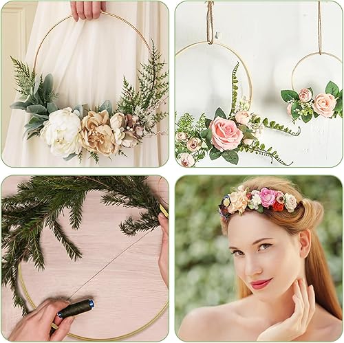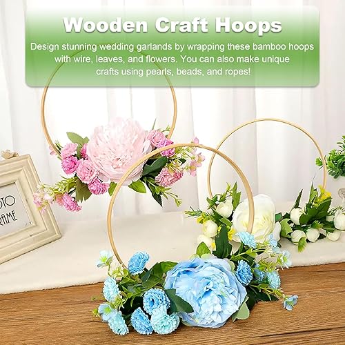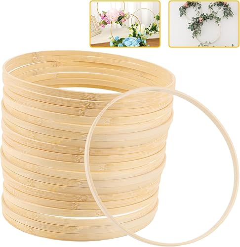 YAYODS Lot de 20 anneaux en bois pour le bricolage - 23 cm - Anneaux décoratifs à suspendre en bois - Couronne de fleurs en bambou - Anneaux pour bricolage, macramé, attrape-rêves pour mariage
