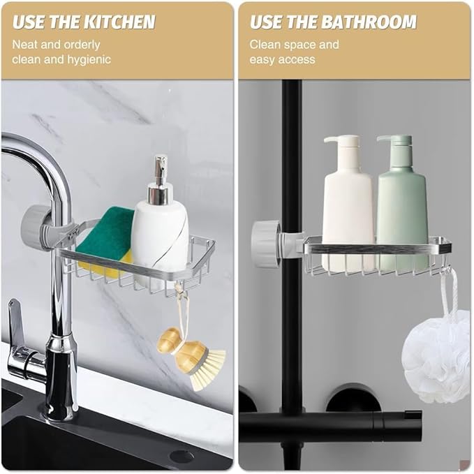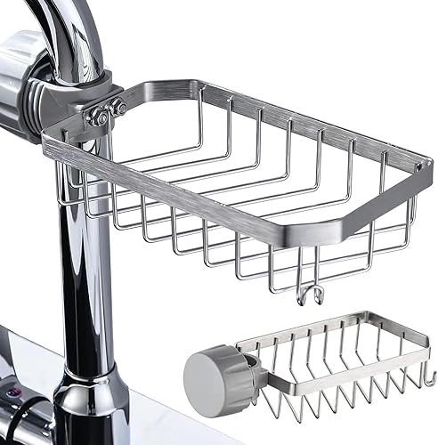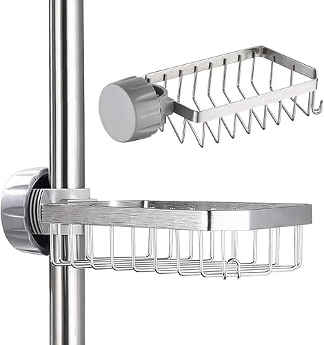 Rixotix Étagère de douche sans perçage, porte-savon, en acier inoxydable, pour barre de douche, organisateur d'évier pour robinet de cuisine