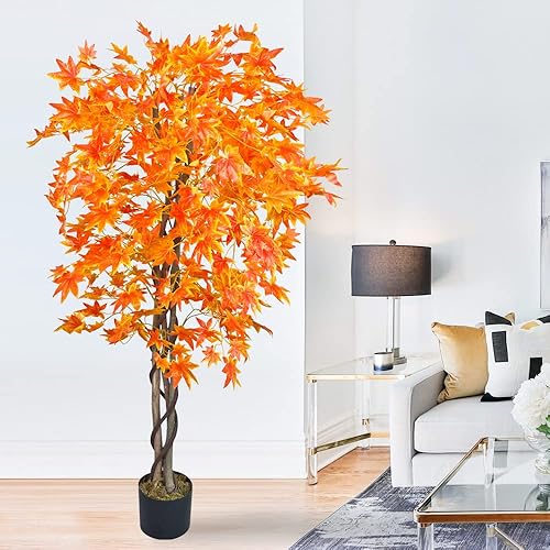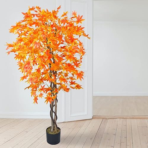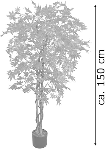 Erable Plante Arbre Artificielle Artificiel Plastique 150cm avec Bois Véritable Domaine Interne Feuilles Rouges Decovego