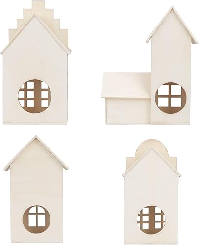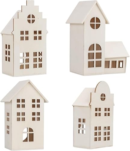 Ideen mit Herz Maisons décoratives en bois | Naturel | 4 tailles | Maisons décoratives avec ouverture | Maison lumineuse | 4 pièces