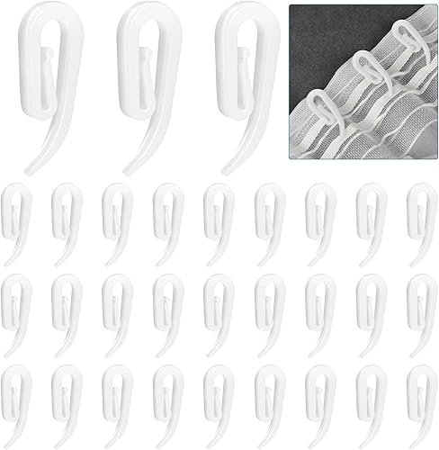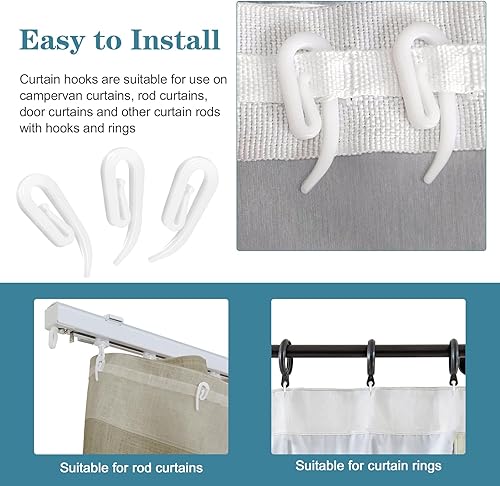 HonGien 100 PCS Crochet Rideau Rail Crochets de Rideaux en Plastique Blanc Rideaux Clips pour Rideau de Douche,Rideau de Fenêtre et Rideau de Porte