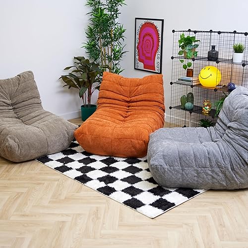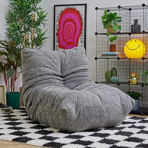 Icon Enzo Chaise de Sol, Tissu Chenille, Gros Pouf avec Remplissage, Fauteuil Pouf, Fauteuil Salon Confortable, Chaise Chambre, Meuble Salon, Gris