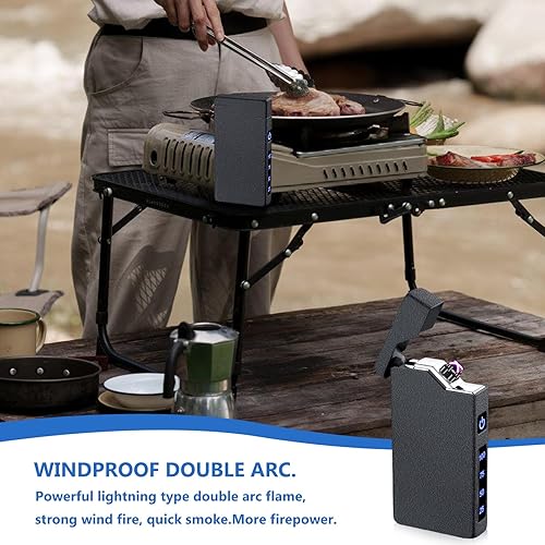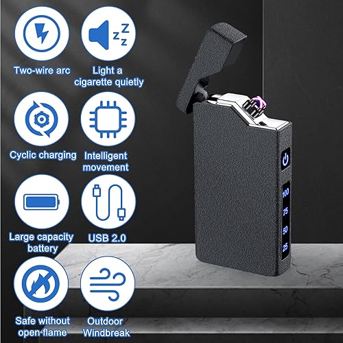 Briquet électrique : briquet à arc électrique, briquet portable avec indicateur de batterie, rechargeable par USB, cadeau unisexe, avec boîte cadeau (noir)
