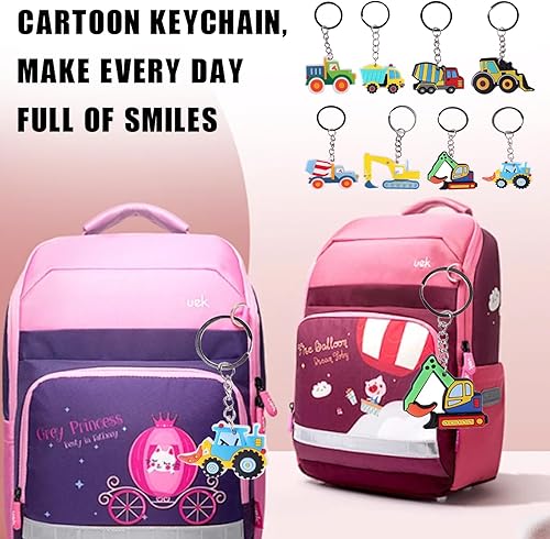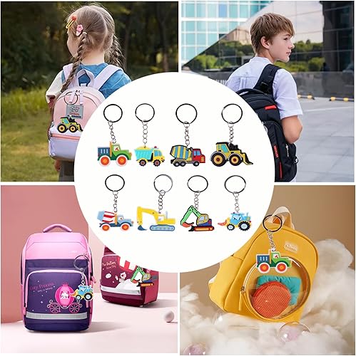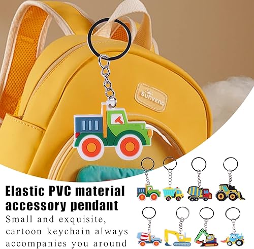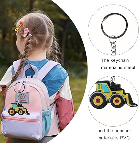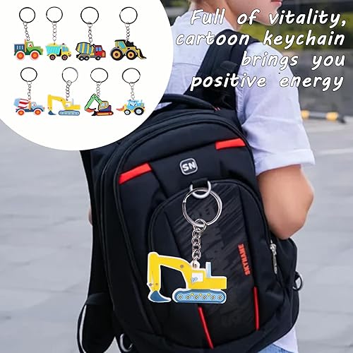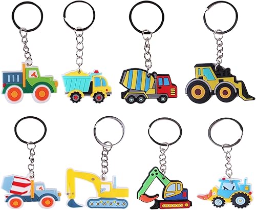 Lot de 8 porte-clés tracteur, véhicules de construction, porte-clés pour enfants, construction, fête, cadeaux d'invités, chantier, cadeau d'anniversaire pour enfants, pelleteuse, jouet pelleteuse,