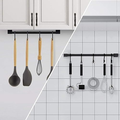KAIYING Porte-ustensiles de cuisine avec crochet en S amovible pour suspendre casseroles et poêles, crochets de tige pour tasses, organiseur mural de rail de cuisine, en aluminium, (noir, 5 crochets)